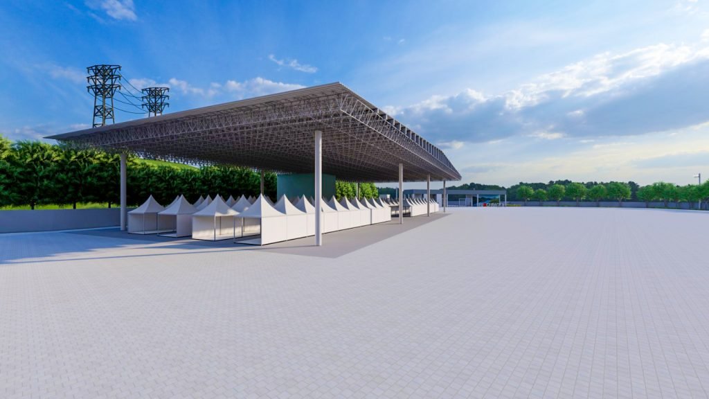 O espaço contará ainda com uma área administrativa, com espaço para reuniões, banheiros, copa, cozinha, salas administrativas, recepções a sala de reuniões, estacionamento para até 500 vagas, entre outros espaços.